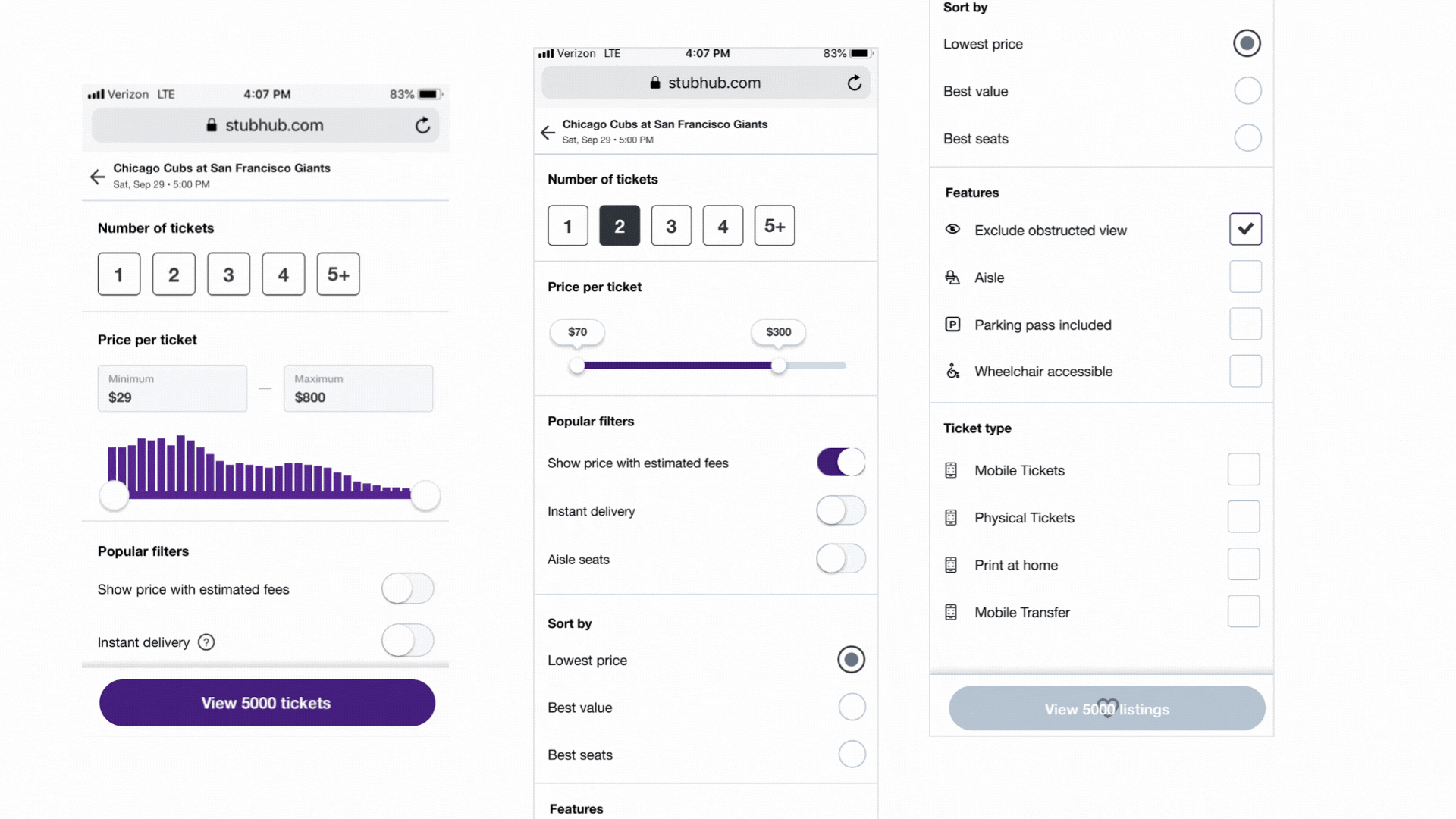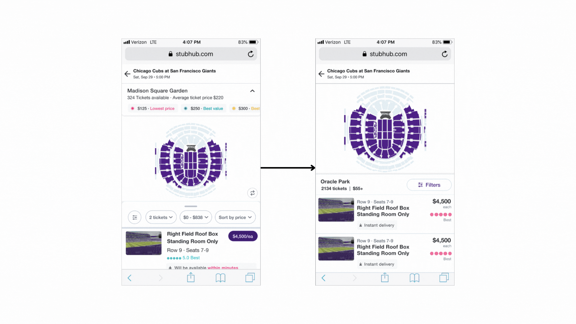 Beyond fixing usability, this was a chance to align stakeholders around meaningful improvements that helped users find and select the right tickets faster—directly supporting higher conversion and reinforcing StubHub’s credibility in a highly competitive marketplace.